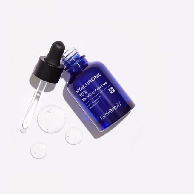 Centellian24 – Hyaluronic Tox Boosting Ampoule – 30 ml – μια συμπυκνωμένη ενυδατική αμπούλα που έχει σχεδιαστεί για να ενυδατώνει σε βάθος, να γεμίζει και να λειαίνει το δέρμα ενώ υποστηρίζει την ελαστικότητα και την ανανεωμένη όψη. Εμπλουτισμένο με υαλουρονικό οξύ και ενεργά συστατικά που μαλακώνουν το δέρμα, βοηθά στην αναπλήρωση της υγρασίας, στη μείωση της εμφάνισης των λεπτών γραμμών που προκαλούνται από την ξηρότητα και στη διατήρηση ενός υγιούς δερματικού φραγμού.