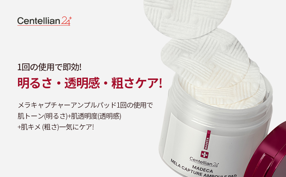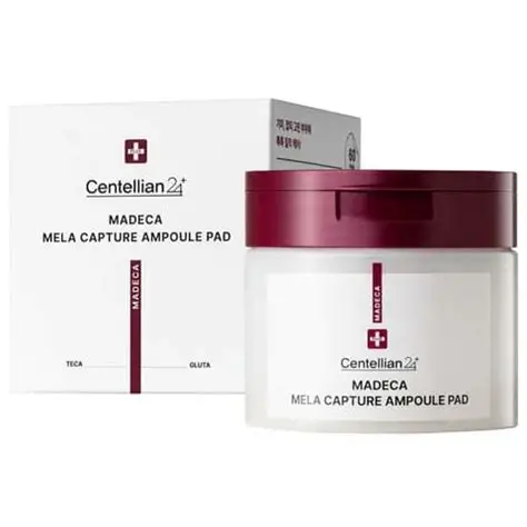 Centellian24 – Madeca Mela Capture Ampoule Pad – 165 ml / 60 τμχ – επιθέματα τόνερ εμποτισμένα με αμπούλες λάμψης που έχουν σχεδιαστεί για να βοηθούν στη βελτίωση του τόνου του δέρματος, στη μείωση της εμφάνισης μαύρων κηλίδων και στην ενίσχυση της συνολικής λάμψης. Εμπλουτισμένα με Madecassoside και ενεργά συστατικά που διορθώνουν τον τόνο, βελτιώνουν απαλά την υφή του δέρματος ενώ προσφέρουν ενυδάτωση και προάγουν μια πιο καθαρή, πιο ομοιόμορφη επιδερμίδα.
