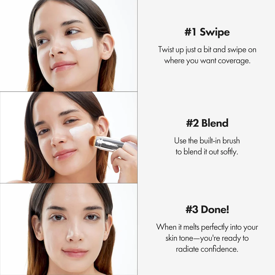 Χρήση: Στρίψτε προς τα έξω περίπου 1 εκ. από το προϊόν. Απλώστε το foundation σε στικ απευθείας στο πρόσωπό σας και στη συνέχεια απλώστε το χρησιμοποιώντας το πινέλο. Απλώστε σε στρώσεις ανάλογα με τις ανάγκες. Η σύνθεσή του σε μορφή balm προσαρμόζεται στον τόνο της επιδερμίδας σας, αφήνοντάς σας μια ισορροπημένη επιδερμίδα, ιδανική για όλη την ημέρα και εύκολη επαναεφαρμογή.