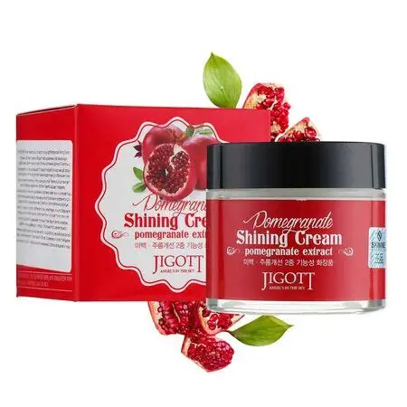 Jigott – Pomegranate Shining Cream – 70 ml – μια θρεπτική κρέμα προσώπου που έχει σχεδιαστεί για να ενυδατώνει το δέρμα ενώ βοηθά στη βελτίωση της λάμψης και της συνολικής υφής του δέρματος. Εμπλουτισμένη με πλούσιο σε αντιοξειδωτικά εκχύλισμα ροδιού και συστατικά περιποίησης του δέρματος, αυτή η ελαφριά κρέμα βοηθά στην υποστήριξη του δερματικού φραγμού, ενισχύει τη φωτεινότητα και αφήνει την επιδερμίδα λεία, απαλή και αναζωογονημένη.