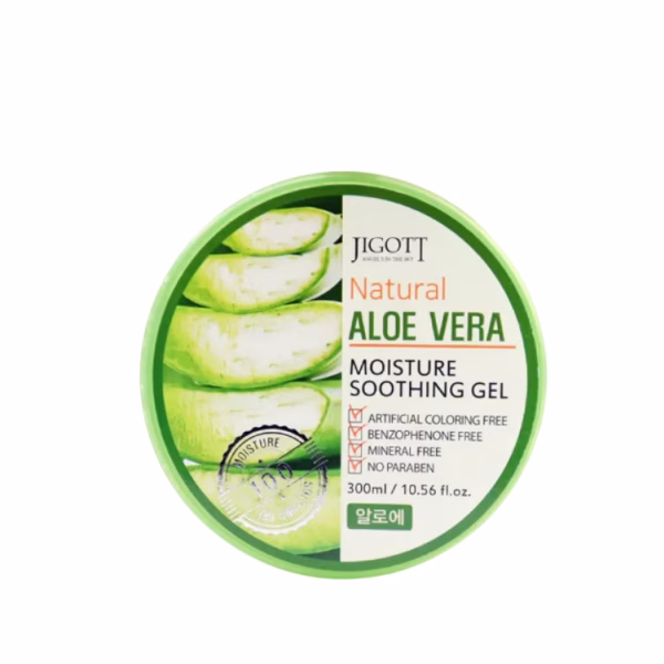 Jigott – Natural Aloe Vera Moisture Soothing Gel – 300 ml – ένα ελαφρύ καταπραϋντικό τζελ που έχει σχεδιαστεί για να προσφέρει αναζωογονητική ενυδάτωση ενώ ηρεμεί το ερεθισμένο ή υπερθερμασμένο δέρμα. Εμπλουτισμένη με εκχύλισμα αλόης βέρα και ενυδατικά συστατικά, αυτή η φόρμουλα γρήγορης απορρόφησης βοηθά στην αναπλήρωση της υγρασίας, στη μείωση της ξηρότητας και αφήνει το δέρμα απαλό, ανανεωμένο και άνετο.