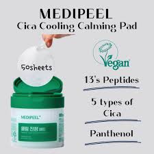 Medi-Peel – Cica Cooling Calming Pad – 50 τεμάχια– καταπραϋντικά τονωτικά επιθέματα εμπλουτισμένα με εκχύλισμα centella asiatica για να καταπραΰνουν τον ερεθισμό, να μειώνουν την ερυθρότητα και να προσφέρουν άμεση δροσιστική δράση.