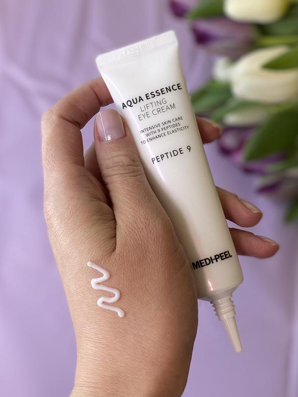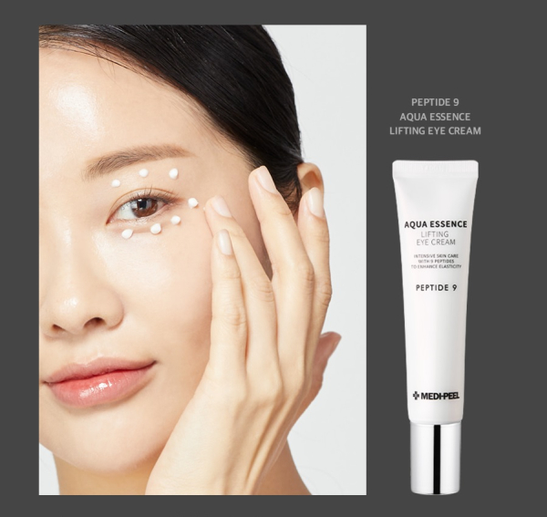 Το Peptide 9 Aqua Essence Lifting Eye Cream της Medipeel είναι ένα προϊόν περιποίησης ματιών, κατάλληλο για να μειώνει τα σημάδια γήρανσης και να ενυδατώνει βαθιά την ευαίσθητη περιοχή γύρω από τα μάτια.